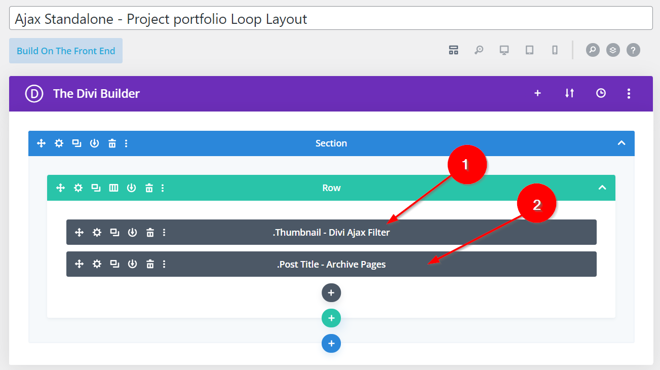 - Add a title, Section, Row and two modules - the Thumbnail and Post Title.