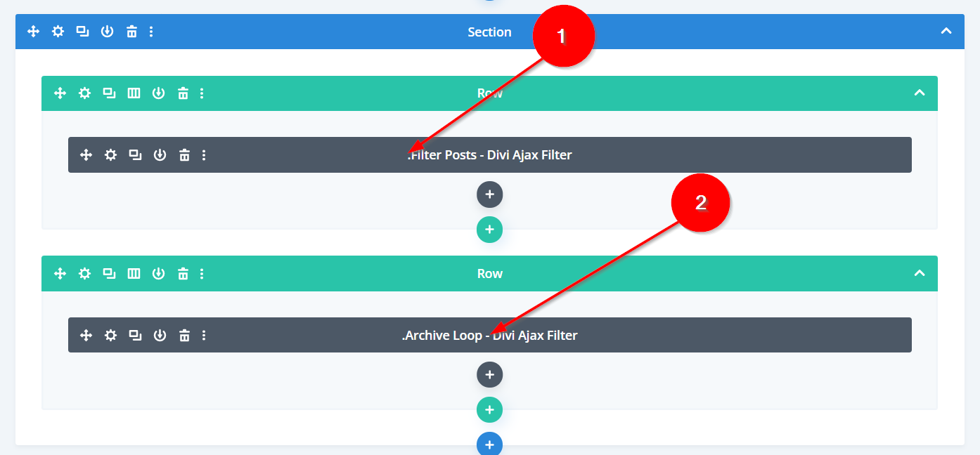 - Add a title, Section, Row and two modules - the Filter Posts and Archive