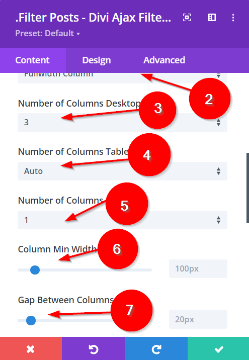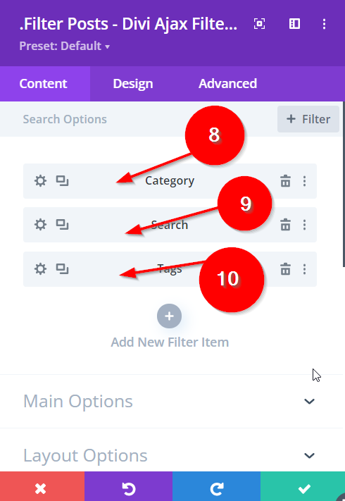 Customize the Filter Post Module to the settings that you want - but below are the important ones to follow to get this style. For more information on this module, please visit our documentation to your left.