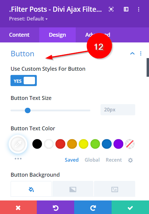 12.) Design your "Reset" Button. We made the Text white, the Background Color black and the Border black. We also made the button icon to show on hover.