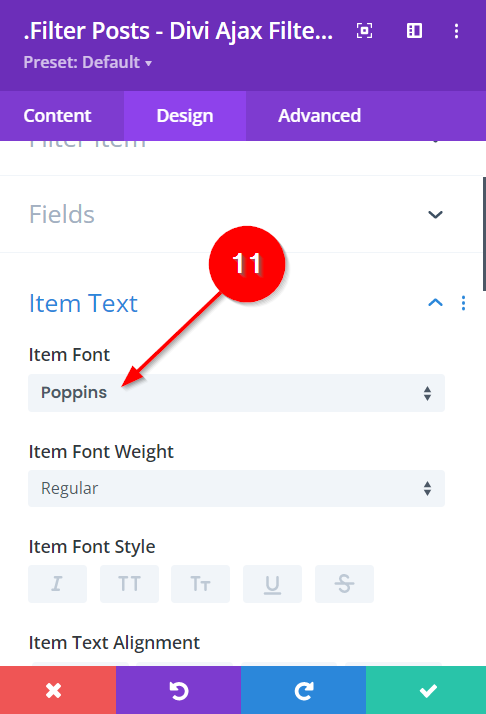 11.) In the Main Settings, Design Tab set the Item Text and Filter Heading Text font to be "Poppins."