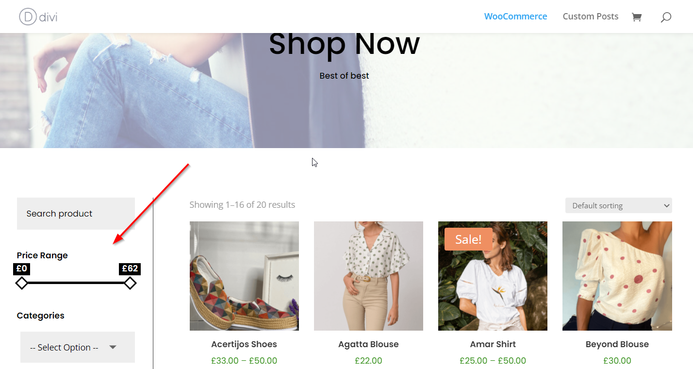 Follow these steps to build the Product Price Filter on our demo site. Click HERE to see the Demo page.