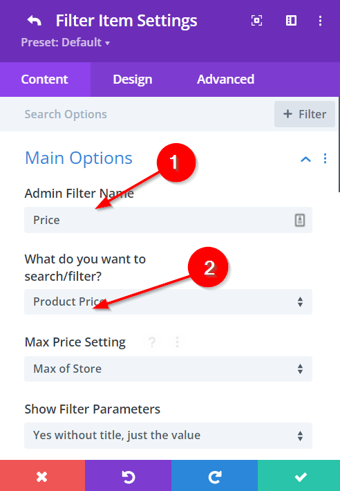 Customize the Main Options of the Main Settings in the Filter Post Module. Below are the important settings to follow to get the style of the Price Filter in the Ajax Filter Demo page shown at the beginning of this tutorial. For more information on this module, please visit our documentation to your left.