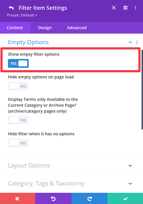 In this documentation, we will discuss how to configure the Divi Ajax Filter plugin to always display all categories and tags, including those with zero count. This allows you to provide a complete overview of available options to your users, even if some categories or tags do not have any applicable products or posts.
