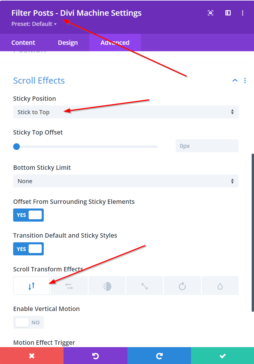 When using Divi sticky scroll feature - as seen in this setup image - your filter may break.