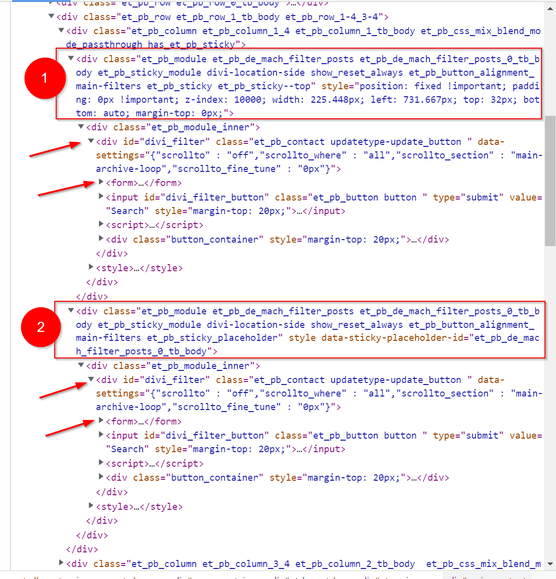 The reason why the sticky scroll feature causes issues with an Ajax Filter is that the whole module gets duplicated.