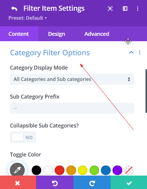Customize your Category Filter further in the Category Filter Options section. Here you can set your filter to display only parent categories or only subcategories, etc.