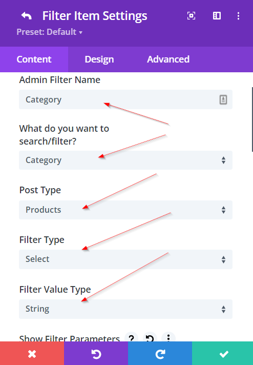 Add a New Filter and customize it. Set the Admin Filter Name as something like Category, what you would like to filter as Category, the Post Type as the Post Type that you would like to filter (e.g. Product, Posts, etc.) and the Filter Type as Select or Checkbox/Radio Buttons. This is enough to get the Category filter working as long as you have set up the Archive Loop correctly.