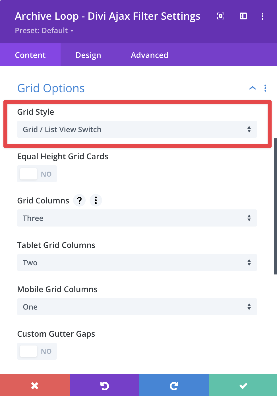 Steps to Set Up the List Grid Switcher in Divi Ajax Filter