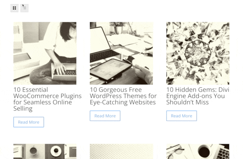 In this documentation, we delve into the powerful feature of Divi Ajax Filter, the List Grid Switcher. This dynamic feature permits seamless switching between the list and grid views. Additionally, it provides extra functionalities, such as the inclusion of a 'Read More' button in grid view and an excerpt text with a 'Read More' link in the list view. This feature operates smoothly with CSS magic, which avoids the need for double loading elements on the screen.