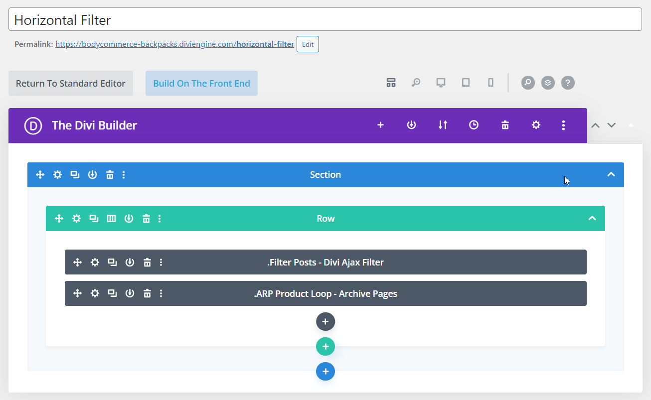 Head over to the page of your choice and add the Filter Posts and Product Loop modules.