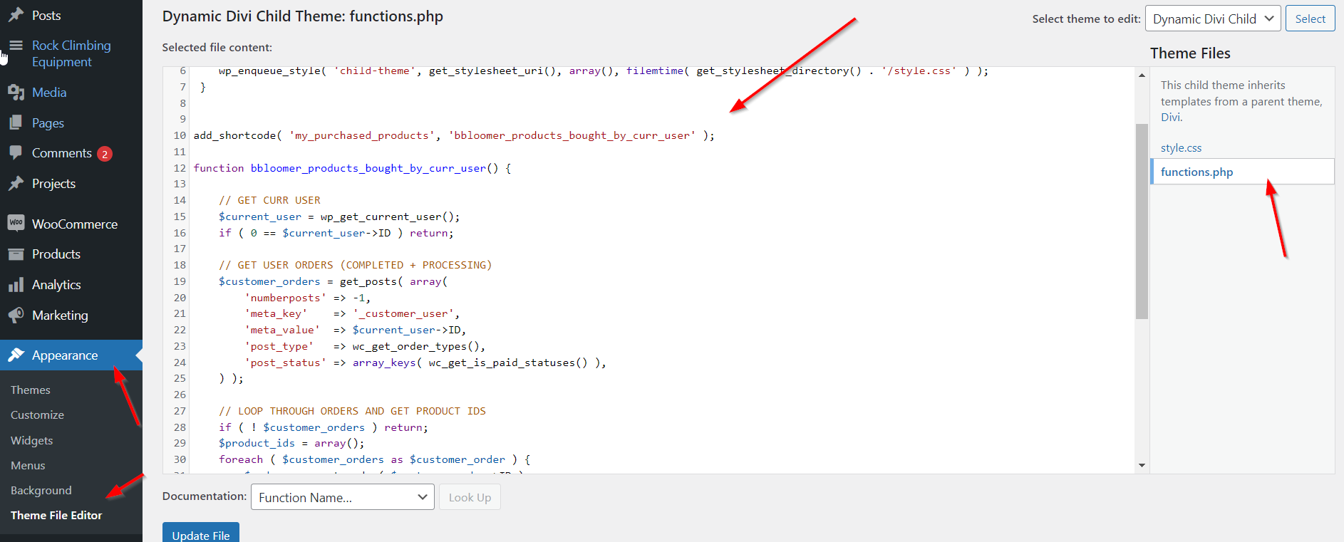 add_shortcode( 'my_purchased_products', 'bbloomer_products_bought_by_curr_user' );
