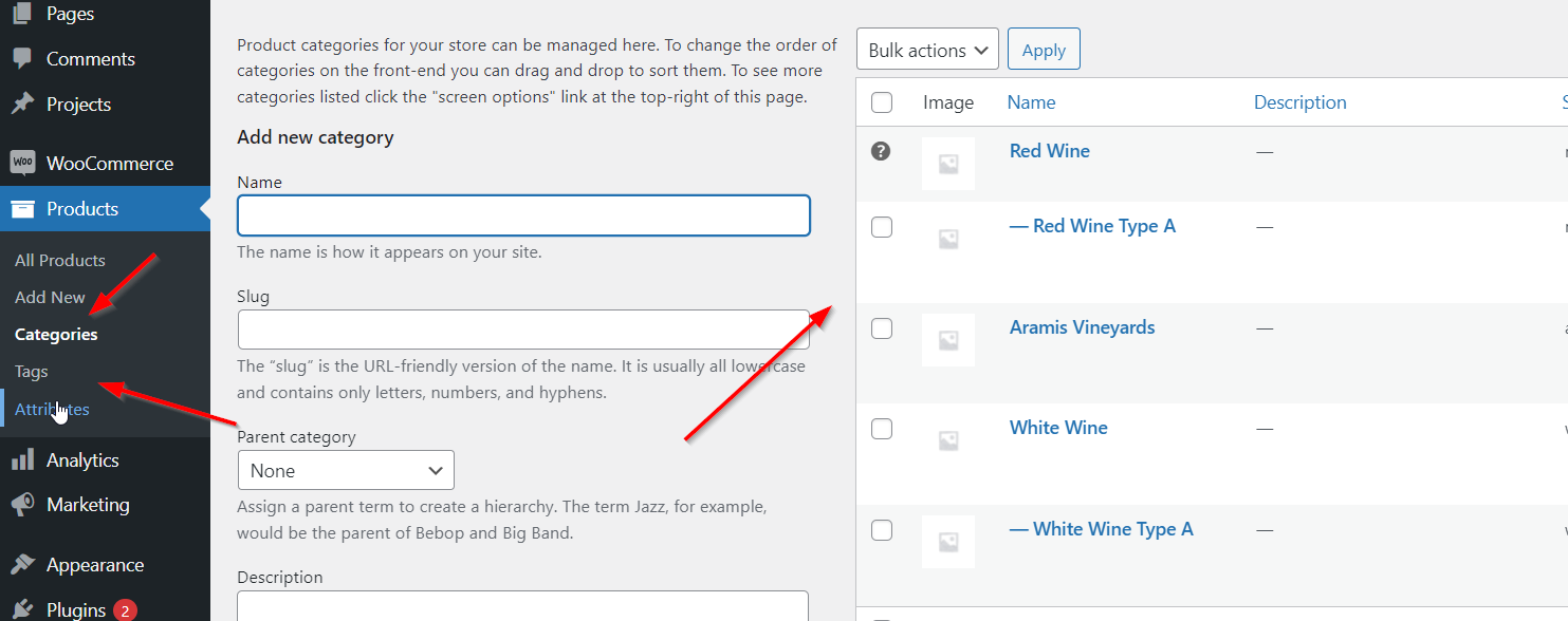 In order to make both these conditional filters work, you will need to create categories and subcategories as well as any other features such as attributes or tags.