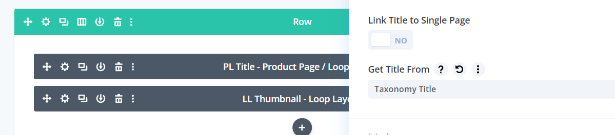 If you would like to use a Custom Loop Layout then create one in the Divi Library adding the Thumbnail module and Post Title module. Inside the Post Title module please select "Taxonomy Title" from the "get Title From" field. Select this layout in the Category Loop module.