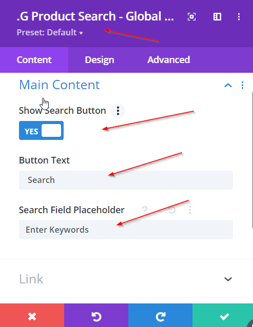 Follow this information to add and edit the G Product Search module. This module displays a product search bar/form.