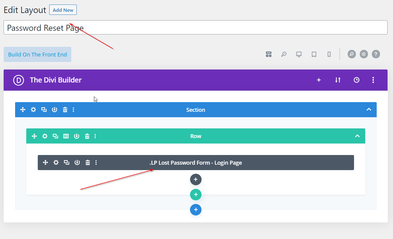 Head over to Divi > Library and create a lost password page adding the LP Lost Password Form module.