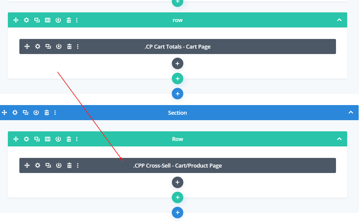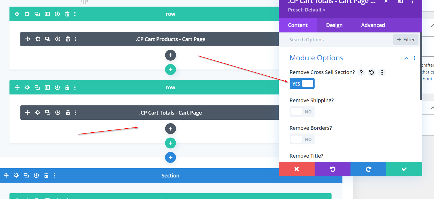 Add the PCP Cross-Sell module to the cart or product page (or both) built in the Divi Library.