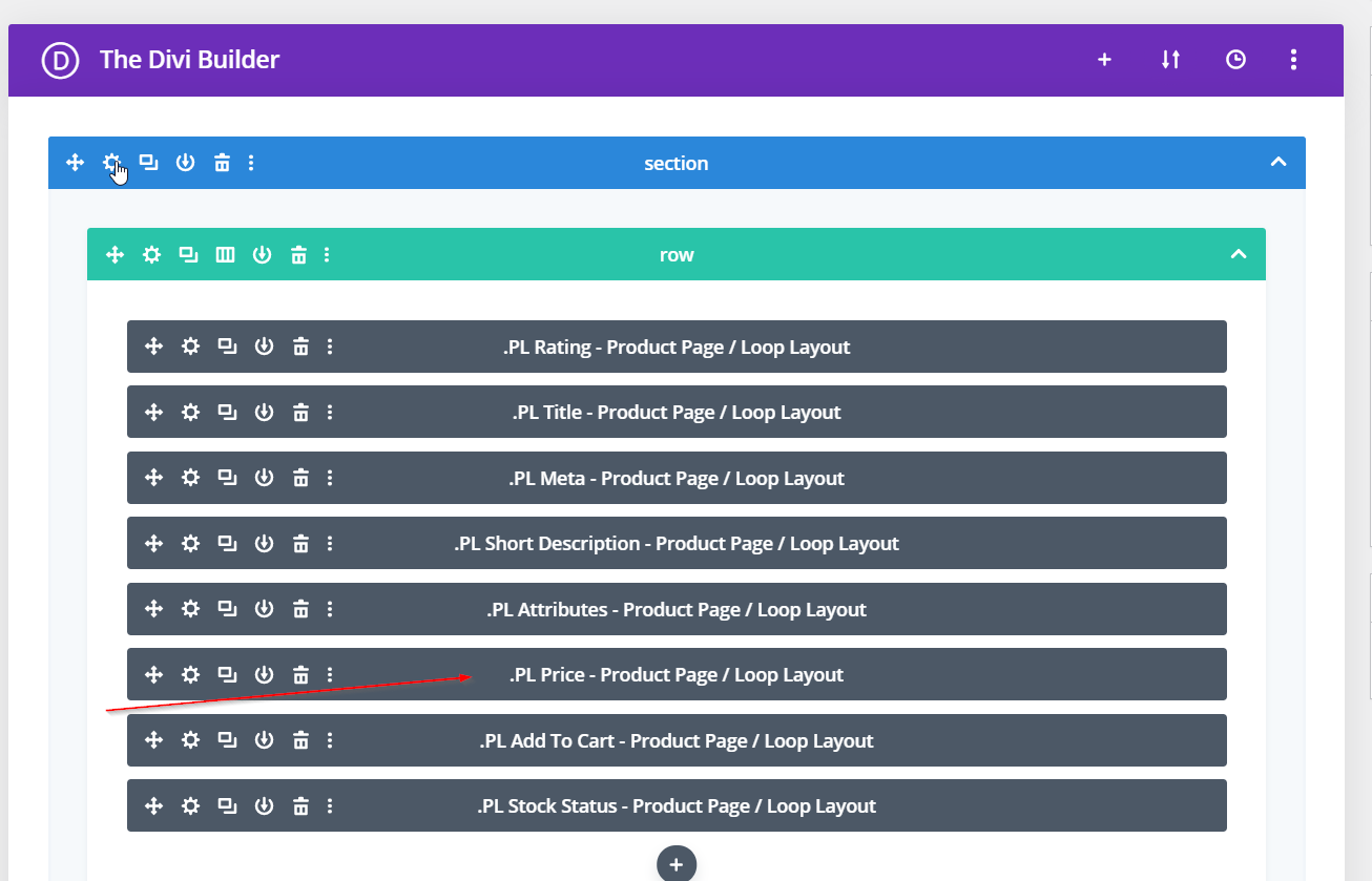 Add the PL Price module to a custom loop layout or product page built in the Divi Library.