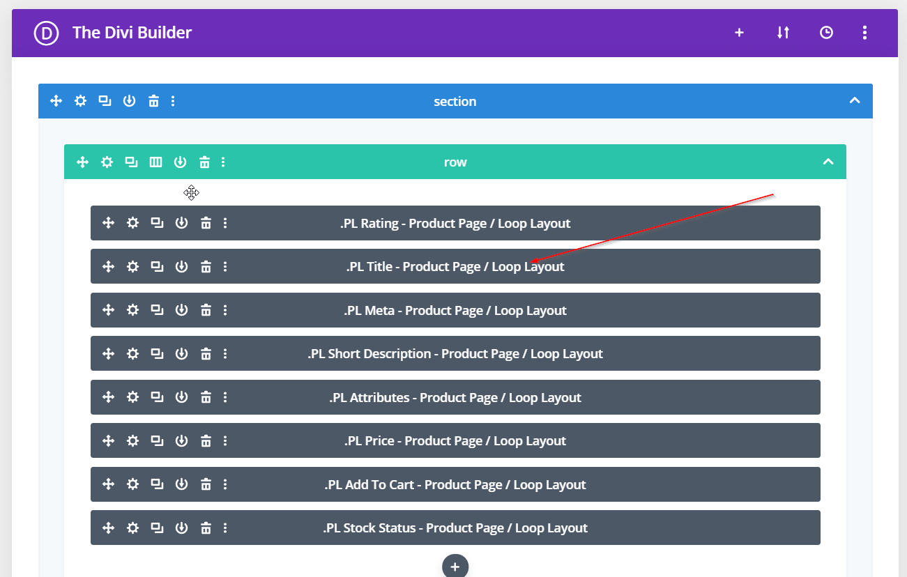 Add the PL Title module to a custom loop layout or product page built in the Divi Library.