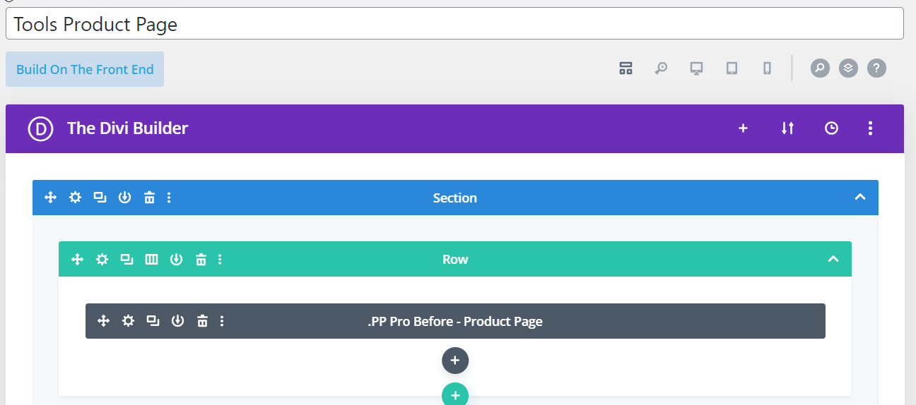 Add the PP Pro Before module to a product page built in the Divi Library.
