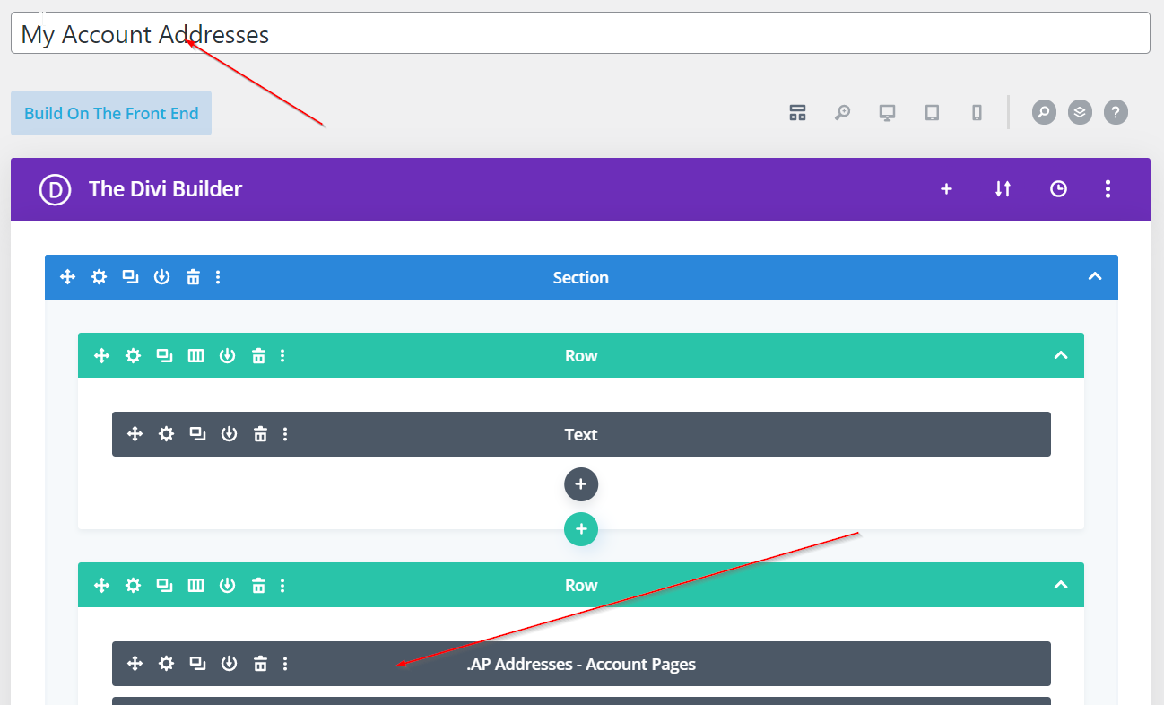 Create the Account Addresses Layout in the Divi Library by adding the AP Addresses module.