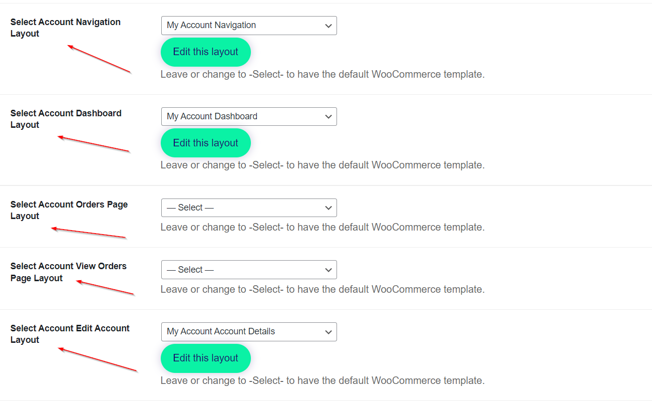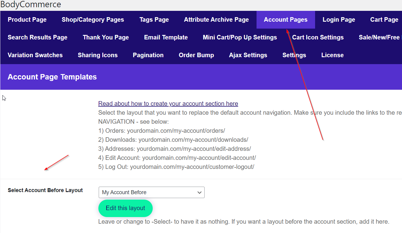 Go to BodyCommerce and assign your layouts to the Account Pages section. Now visit your account to see it all put together.