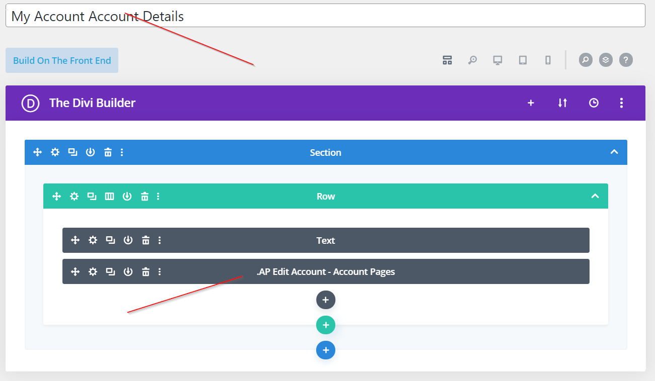 Create the Account Details Layout in the Divi Library by adding the AP Edit Account module.
