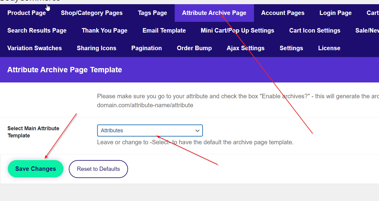 Assign this layout in BodyCommerce. After this go to your_domain_name/attribute_name/attribute