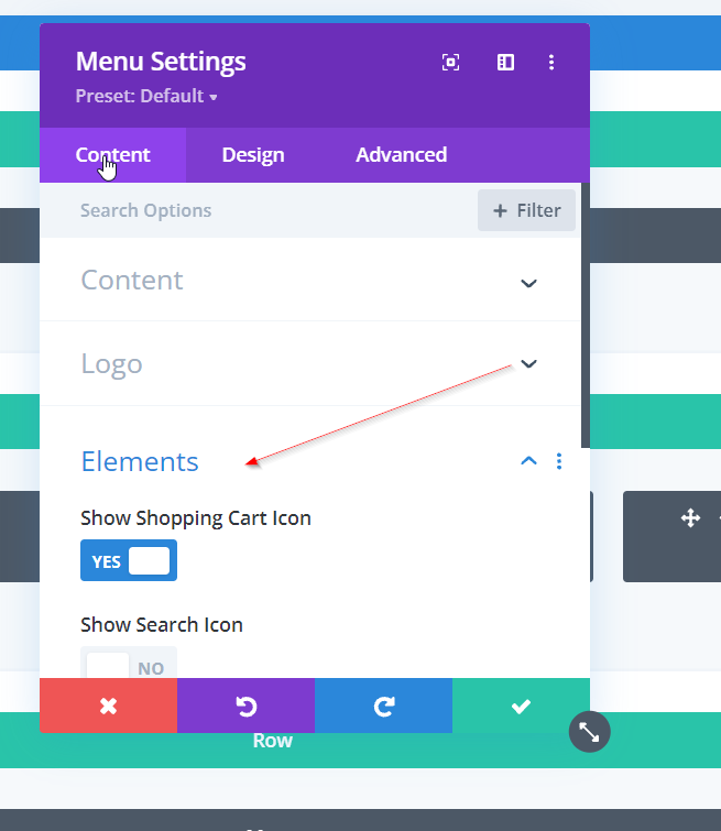 Your first step is to add the cart icon to your menu. By default, WooCommerce adds a cart icon to your default WordPress menu. If you are using the Them Builder for your main menu then add the Menu module, select Cart and show the shopping cart icon. Now you will have a cart icon in your menu. Note that you can customize this icon using the "Cart Icon Settings" in BodyCommerce. Click HERE for more on styling your cart icon.