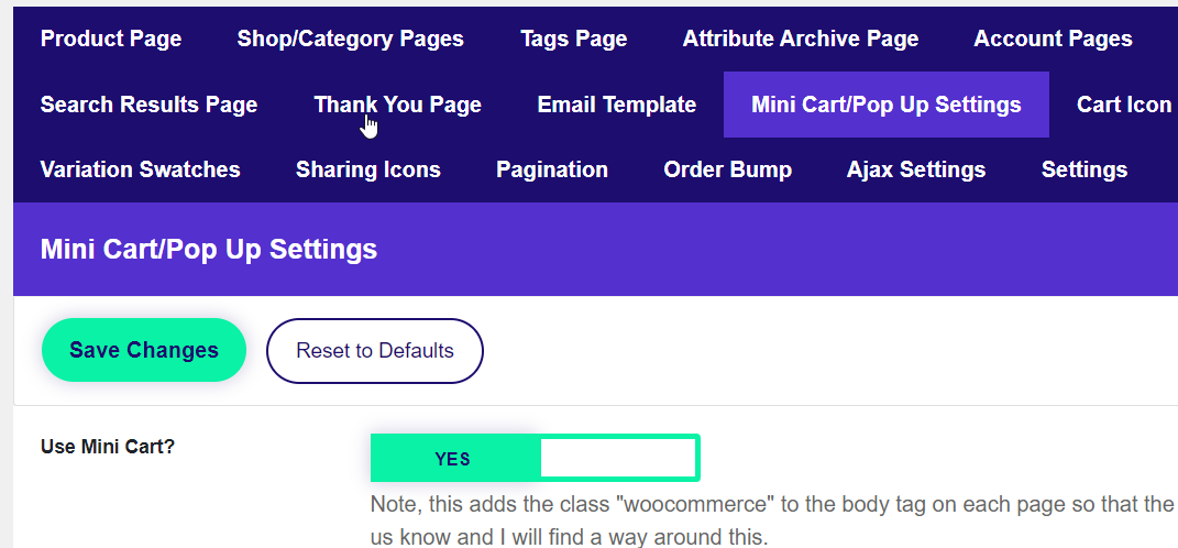 - Ajax Mini Cart/Pop Up: Enable this so that when they add the product to the cart it will auto-update the cart. If this is disabled, the cart will still show the old value in the cart until the page is reloaded.