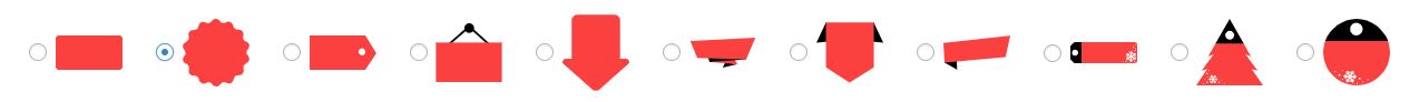 Choose one of our predefined SVG sale badges (below is a screenshot of the available ones as per the date of this document).