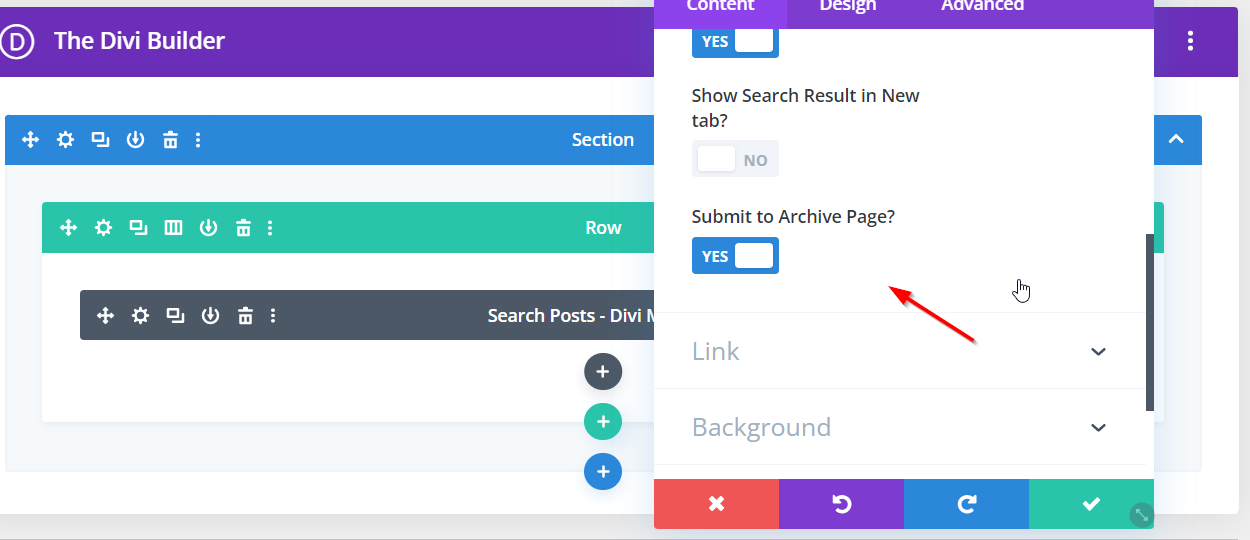 Set up the Search Post module by defining the Post Type and enabling the "Submit to Archive page" button.