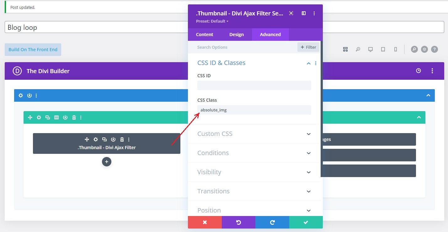 The CSS is not being generated by Divi to show the featured image as a background image. We, therefore, need to get creative and use our thumbnail module to get the image and then transform it into looking like a background image. There is an SEO advantage of this since the image can be crawled by Google (background images cannot).