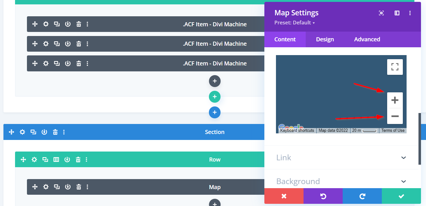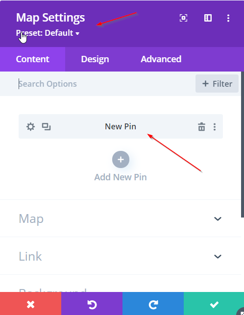 Now it is time to add the Divi Map Module to your single post page template built in the Divi Theme Builder. Add the Map module and one pin.