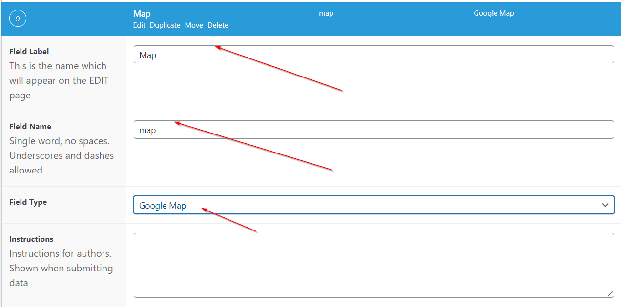 If you have done this correctly, then in your post you should see a live preview of Google Maps in the Map field.