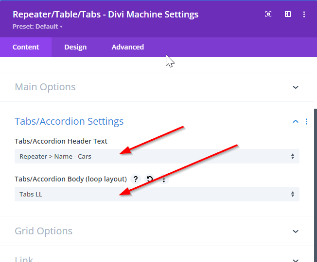 Follow this tutorial on how to set up tabs with Divi Machine and our Repeater module.