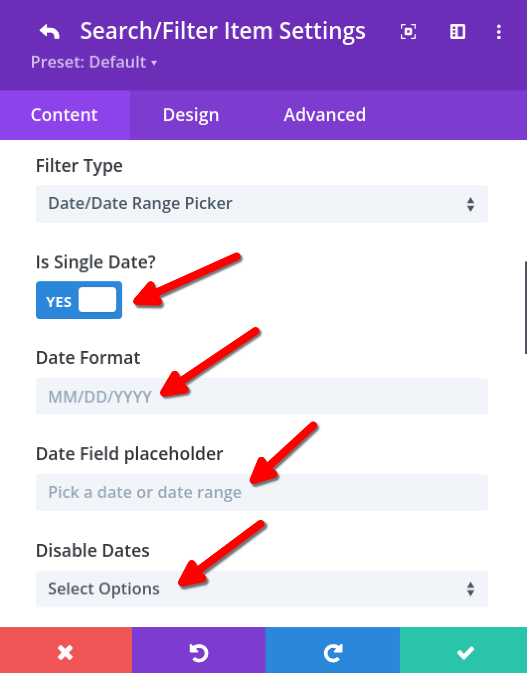 Is Single Date?to ``` YES - If you want to filter by date range, set