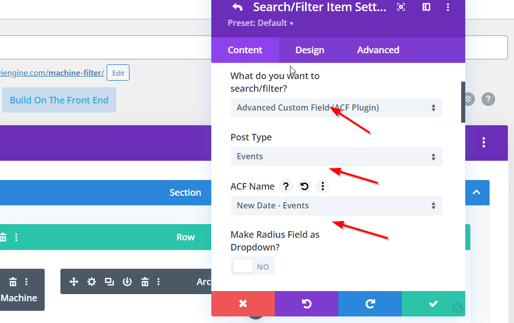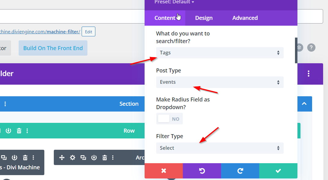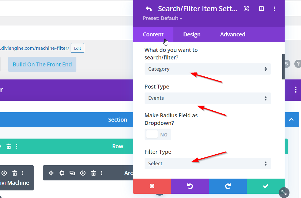 Customize the Archive Loop Module. The most important settings to get your filter working are the Post Type, Custom Loop Layout and Is Main Loop.