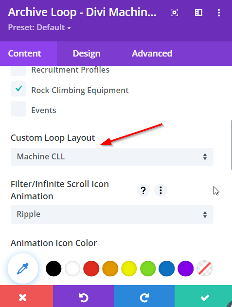Select the Custom Loop Layout that you have built in the Divi Library.