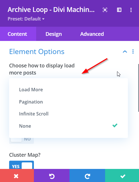 After setting up your Archive Loop, scroll down to the Element Options section and select how you would like to load your posts.