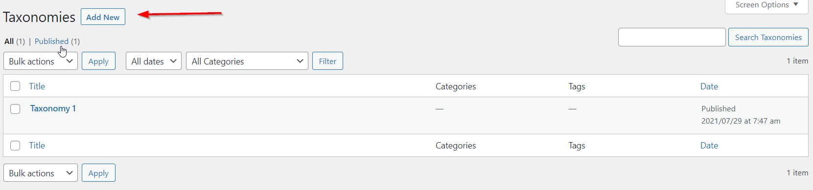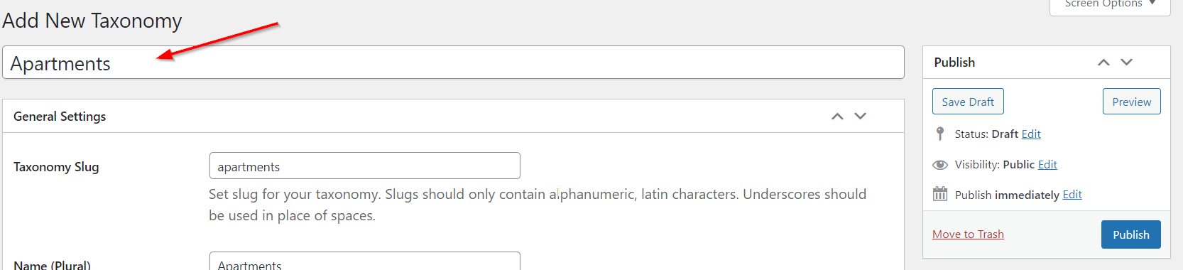 - Public: Whether a taxonomy is intended for use publicly either via the admin interface or by front-end users.