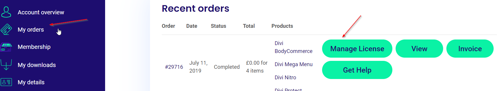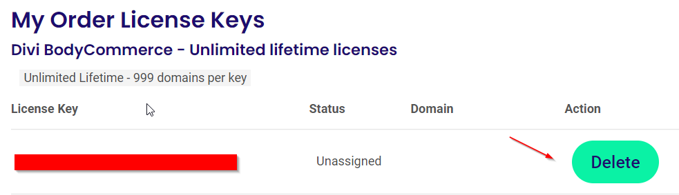 Then delete the unused license key from the My Order License Keys area of your Divi Engine account.