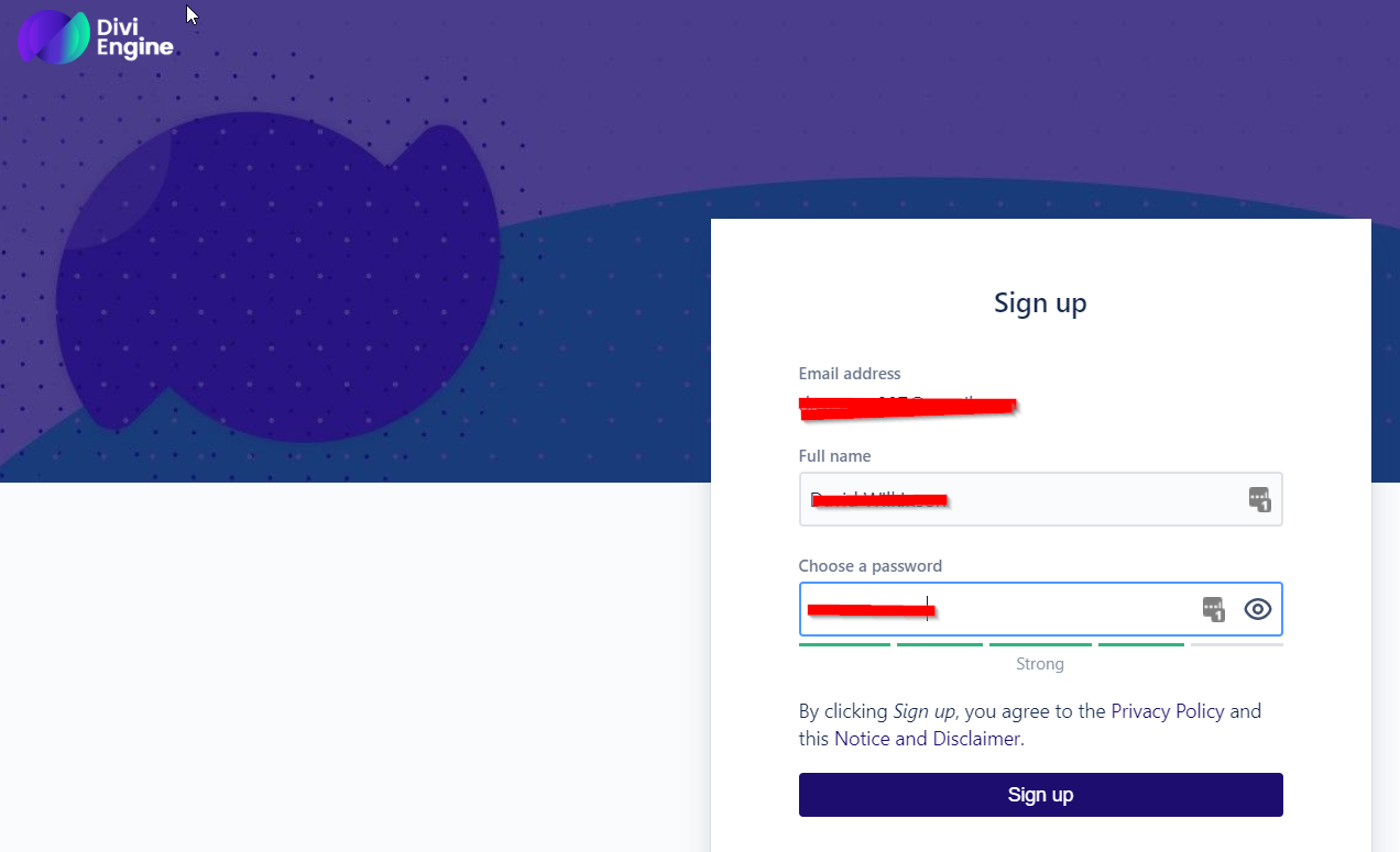Complete the signup with your name and password.